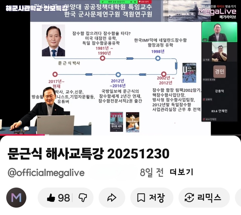 문근식 교수님께서 해군사관학교 특강을 메가라이브와 함께 진행하였습니다.