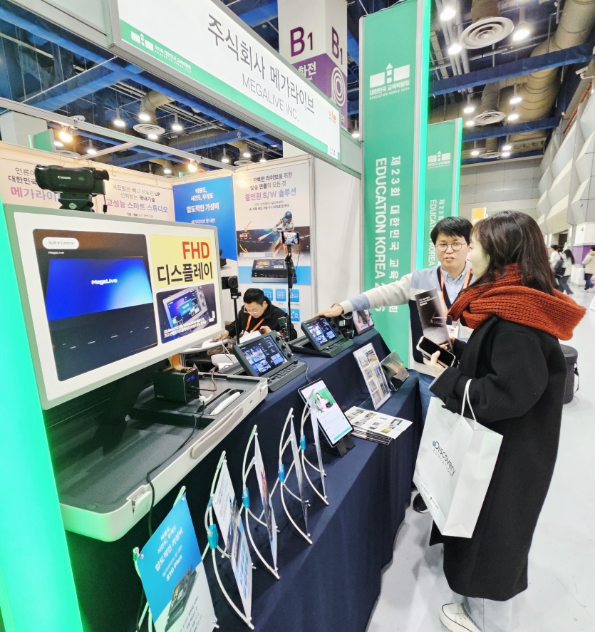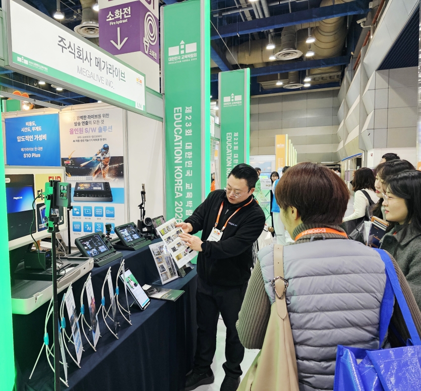 메가라이브는 지난해에 이어 금번에도 에듀테크 기업으로 S10 Plus 제품을 소개하는 전시부스로 참여를 하였습니다.