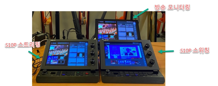 - S10 Plus 1번에서 스트리밍, 오버레이, 로어써드, 오디오 믹싱, 방송 제어함