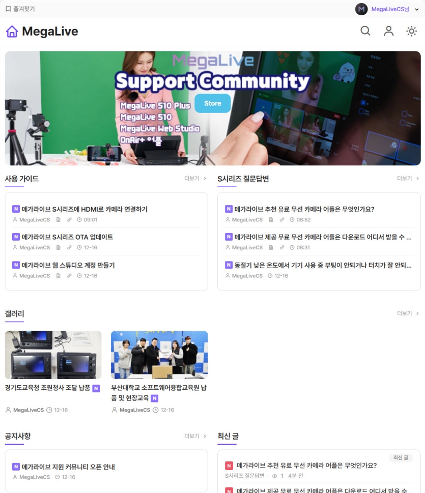 메가라이브 제품과 서비스를 이용하는 고객과의 원활한 소통과 지원을 위해 MegaLive Support Community를 운영합니다.
